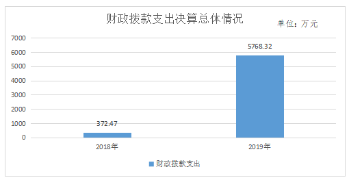 2019年财政拨款总支出5768.32万元,较上年增加5395.85万元,主要原因是支付新市民中心装修改造及配套工程费用、机构改革人员经费增加。