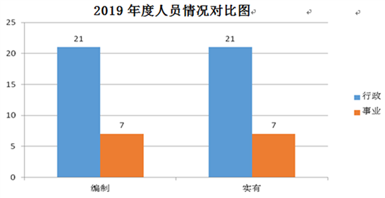 截止2019年底,本部门人员编制28人,其中行政编制21人、事业编制7人;实有人员28人,其中行政21人、事业7人。单位管理的离退休人员0人。