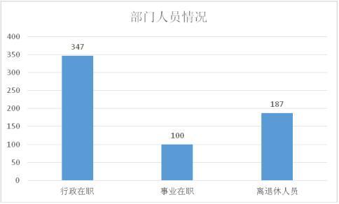 区市场监督管理局为机构改革部门,截止2019年底,机构改革调整尚未完成,人员编制数暂未核定。2019年底实有在职人员447人,其中:行政在职347人,事业在职100人。单位管理的离退休人员187人。