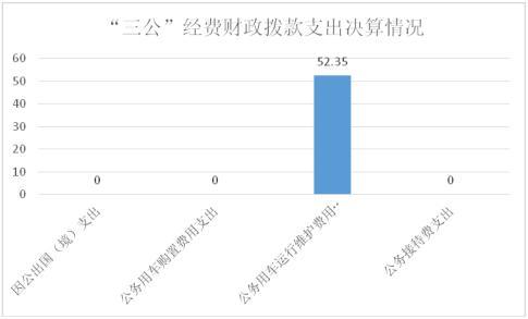 2019年“三公”经费财政拨款支出决算中,因公出国(境)费支出决算0万元;公务用车购置费支出0万元;公务用车运行维护费支出决算52.35万元;公务接待费支出决算0万元。具体情况如下: