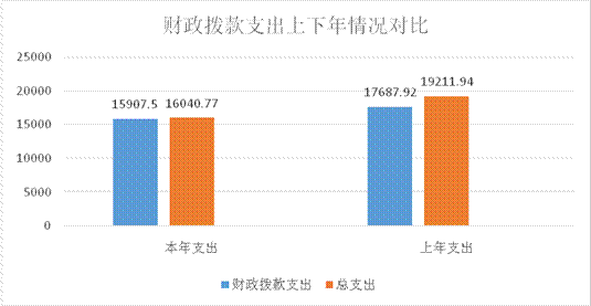 2019年财政拨款总支出16040.77万元,较上年减少3171.17万元,下降16.5%,主要原因是机构改革,医疗、生育等职能划转到医保局。