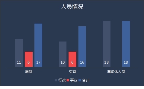 截止2019年底,本部门人员编制17人,其中行政编制11人、事业编制6人;实有人员16人,其中行政10人、事业6人。单位管理的离退休人员18人。