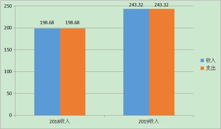 2019年本年收入为243.32万元,较上年增加46.47万元,增长46.47%,主要原因是公积金系数调整、工资调整。