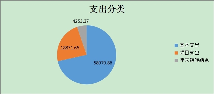 (一)基本支出58079.86万元,占75.48%,主要是为保障机构正常运转、完成日常工作任务而发生的各项支出。其中:工资福利支出43674.76万元,对个人和家庭的补助支出808.95万元,商品和服务支出13596.15万元。增加原因为住房公积金基数调整等人员经费增加。