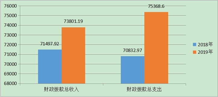(一)2019年财政拨款总收入为73804.19万元,较上年增加2114.27万元,增长2.95%,增加原因是住房公积金基数调整等人员经费增加。