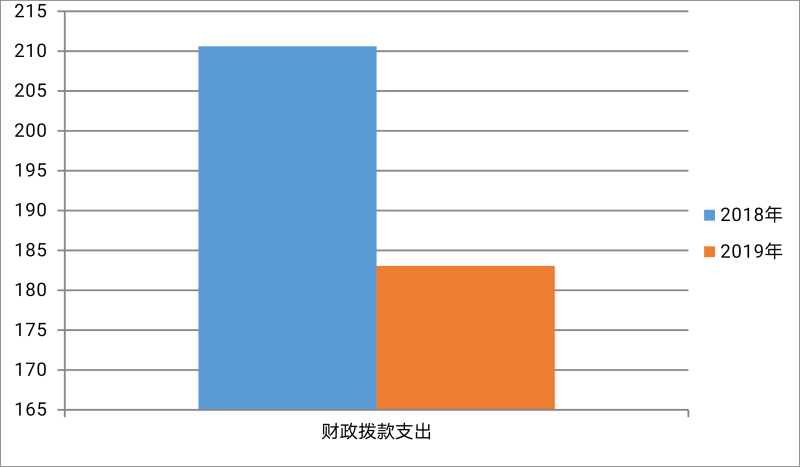 2019年财政拨款总支出183.07万元,较上年减少27.55万元,下降13%,主要原因是2019年未开展其他形式巡察工作。