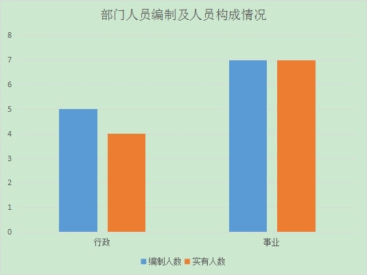 截止2019年底,本部门人员编制12人,其中行政编制5人、事业编制7人;实有人员11人,其中行政4人、事业7人。单位管理的离退休人员13人。