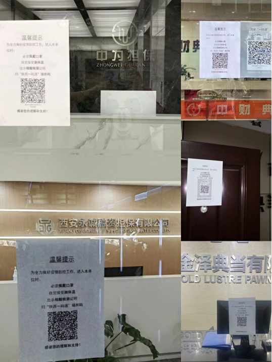 区金融办深入研判市、区疫情防控工作要求,根据《新型冠状病毒肺炎防控方案(第九版)》和辖区地方金融组织实际,研究制定了《关于加强碑林区金融行业疫情防控的工作方案》,明确了组织机构、职责分工、防控措施和工作要求。同时要求辖区地方金融组织在经营场所入口张贴《温馨提示》,严格落实“扫码、测温、戴口罩、查验核酸”等防控措施。