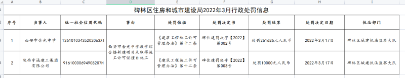 碑林区住房和城市建设局2022年3月行政处罚信息