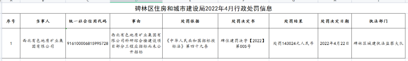 碑林区住房和城市建设局2022年4月行政处罚信息