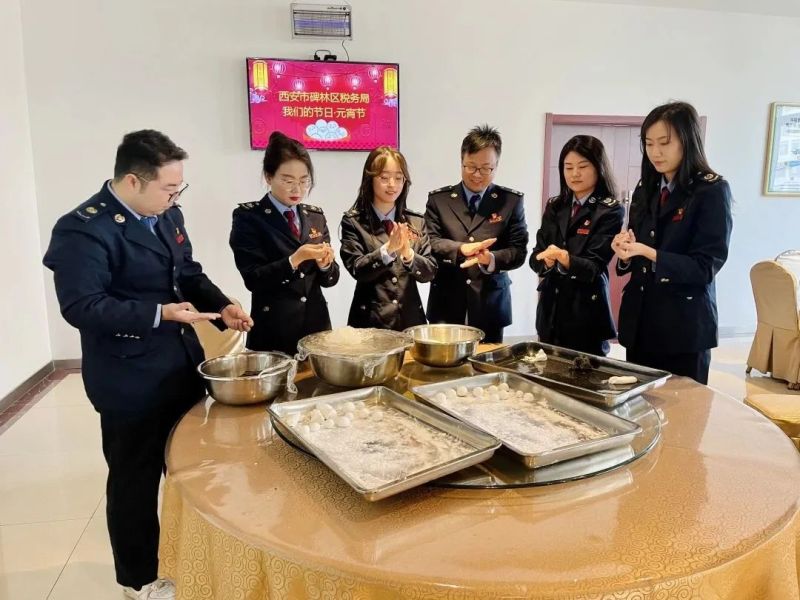 在机关单位食堂,国家税务总局西安市碑林区税务局青年干部围坐在圆桌旁边,拿出提前买好的糯米粉、黑芝麻馅儿,施展各自的技艺。很多人都是第一次包汤圆,大家向食堂厨师积极学习,虚心讨教,认真实践,不一会儿就成了“熟练工”。青年干部还一起分享了元宵节相关的传说故事,充分领略到中华传统文化的源远流长、博大精深。