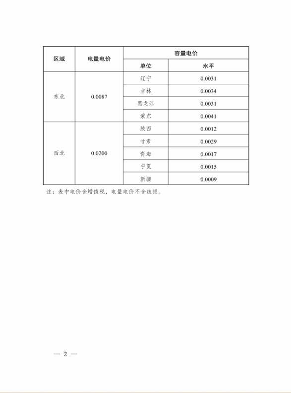 一、华北、华东、华中、东北、西北区域电网第二监管周期(2020年1月1日~2022年12月31日)两部制输电价格水平详见附件。其中,电量电价随区域电网实际交易结算电量收取;容量电价随各省级电网终端销售电量(含市场化交易电量)收取;京津唐电网范围内,位于北京、天津、河北境内的电厂参与京津唐地区交易电量不纳入华北电网电量电费计收范围。