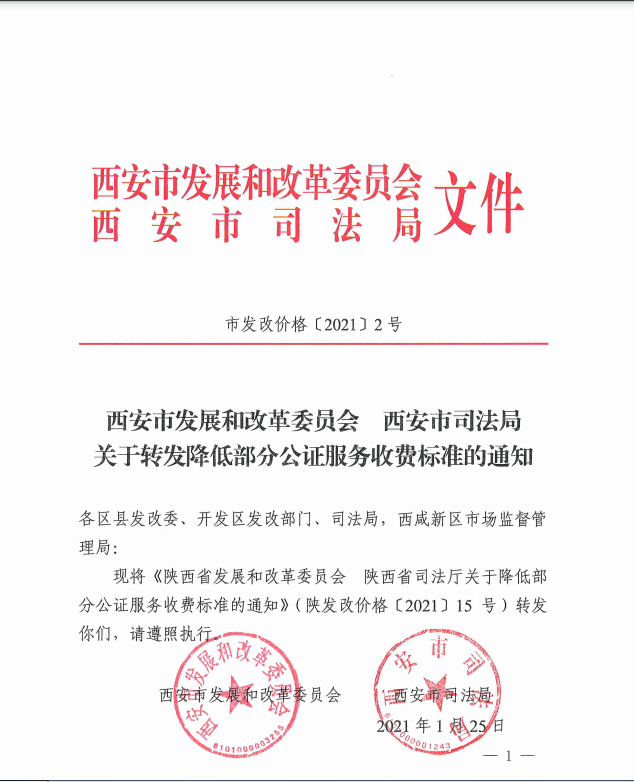 西安市发展和改革委员会西安市司法局关于转发降低部分公证服务收费标准的通知(市发改价格〔2020〕2号).pdf