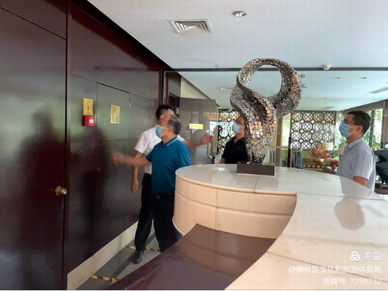 8月8日上午,市文旅局安全应急处处长王辉带队督查我区星级酒店安全隐患排查清零工作进展,区文化和旅游体育局田鹏利副局长陪同督查。