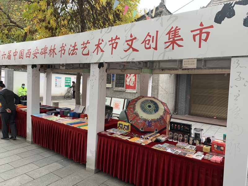 陕西动漫产业平台组织园区动漫文创相关企业在书法文创集市上展示了唐妞、西西安安、秦风小子、呦呦鹿鸣等优秀的动漫IP形象和极具特色的文旅产品。此次文创产品是从数百件报名作品中遴选而出的,为市民游客展示出属于中华传统文化的潮流一面。