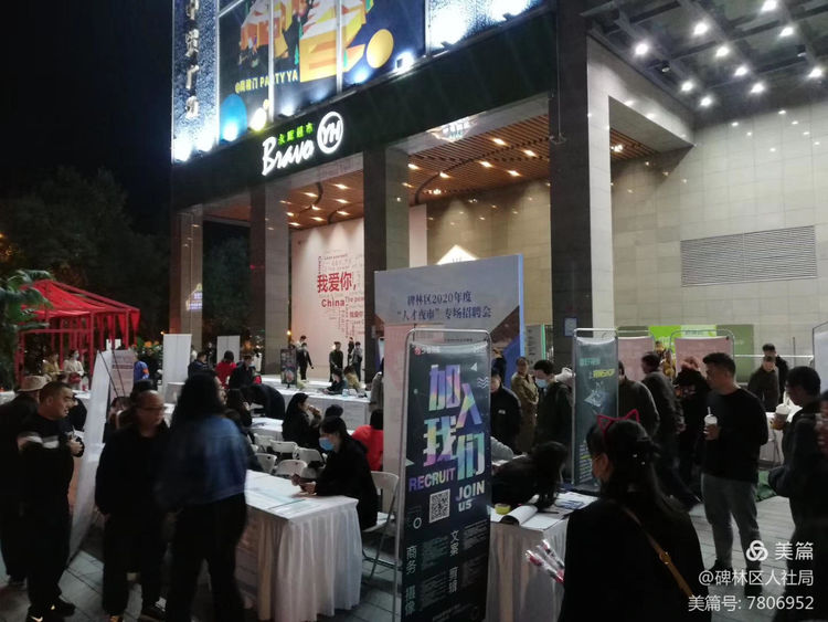 10月16日晚上碑林区第二场“人才夜市招聘会”在中贸广场拉开了帷幕,本次招聘会是碑林区人社局联合长安路街办共同举办。“人才夜市”与热闹的中贸广场步行街相融合,参照夜市的形式布置招聘现场,每个企业一个“摊位”,既提升求职体验,又助推夜市经济。