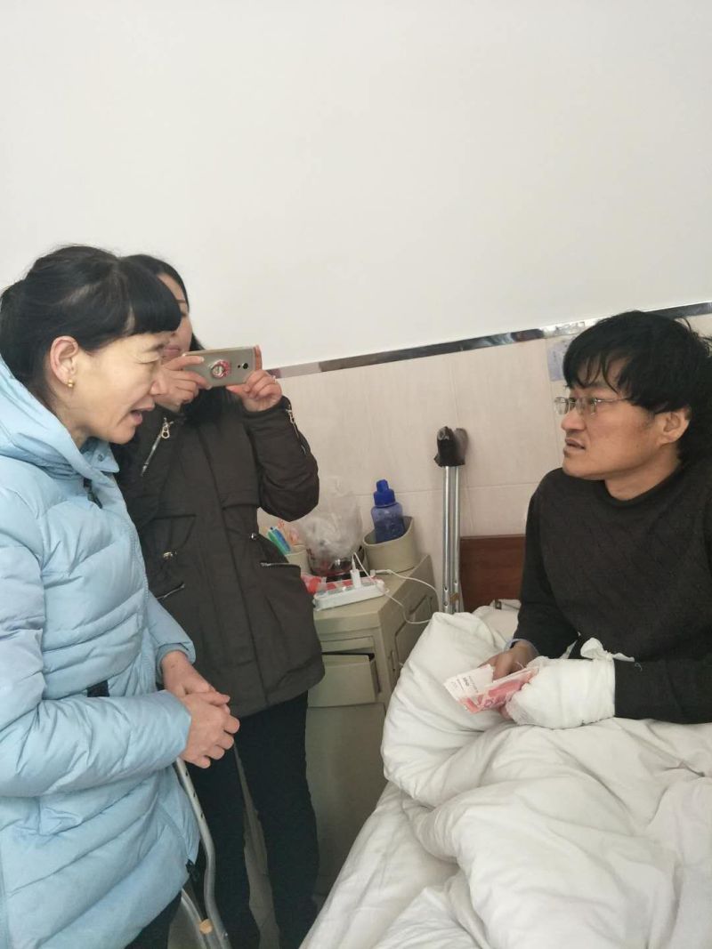 1月23日上午,碑林区残联副理事长石芮、区残联工作人员、太乙路街道铁路局社区主任、街道残联协理员和铁路局社区残疾人专委一行到第九人民医院慰问因烫伤住院的残疾人李西京。