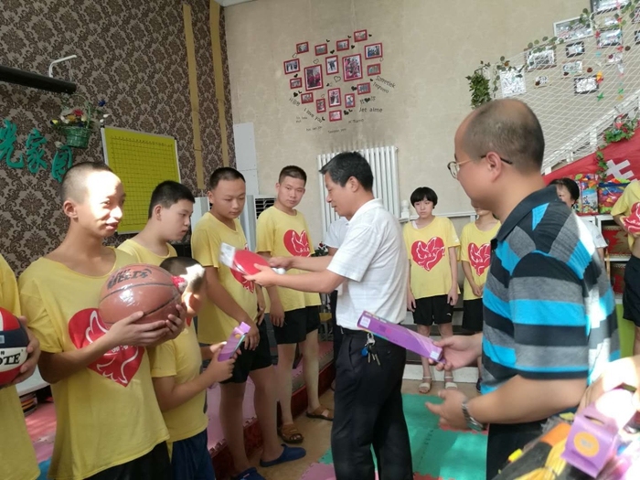 刘拴群理事长一行来到特教机构详细了解了学校的日常教学情况和学生的学习、生活等情况,为学生们送去了篮球、排球、跳绳等体育运动用品,并与学生们开展了趣味活动。通过活动,培养了学生们自信、自强精神,分享了快乐,增进了友谊,也增强他们融入社会的信心。