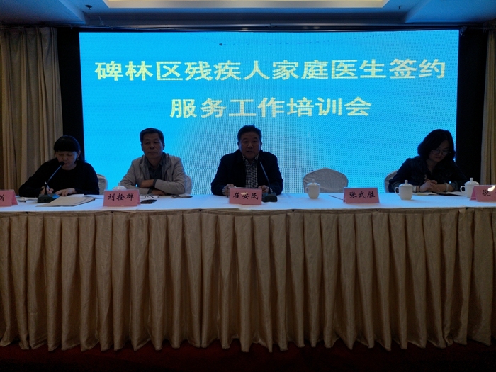 区卫计局副局长张武胜宣读了《碑林区残疾人家庭医生签约服务实施方案》,就工作要求、组织管理、服务对象、工作流程等方面做了详细解读。东关南街社区卫生服务中心代表碑林区各社区卫生服务中心做表态发言。