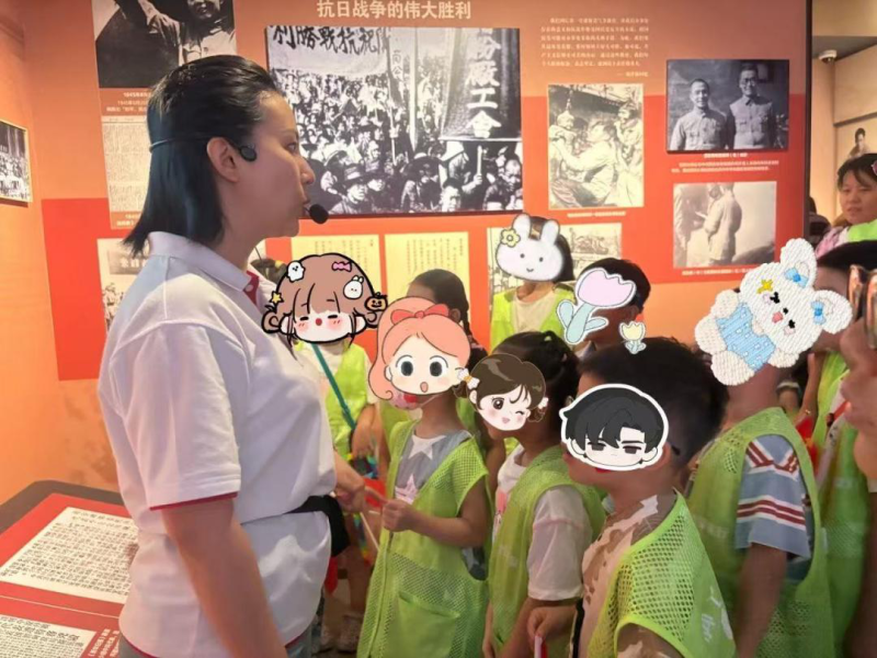 讲解员带领着孩子们,在一件件珍贵的革命文物前细细观摩:泛黄的文件纸张上依稀可见当年的字迹,褪色的电台外壳记录着岁月的痕迹,锈迹斑驳的军用水壶仿佛还带着战场的温度......这些承载着历史记忆的实物和照片,将感人肺腑的红色故事娓娓道来。孩子们专注地聆听着,眼神中闪烁着对革命先烈的崇敬,那段烽火岁月在他们心中变得愈发清晰而深刻。