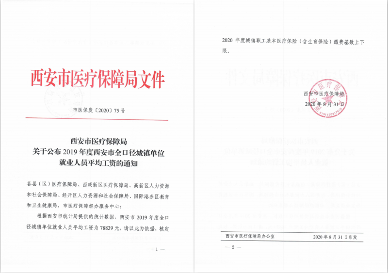 关于公布2019年度西安市全口径城镇单位就业人员平均工资的通知