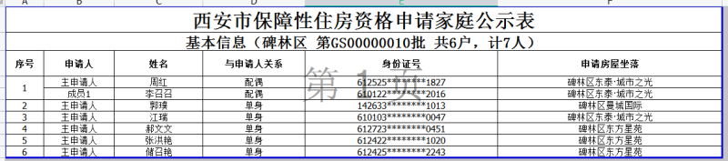 西安市保障性住房资格申请家庭公示表
