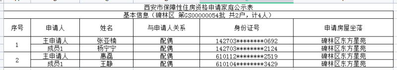 西安市保障性住房资格申请家庭公示表