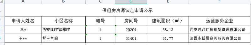 保租房房源认定申请公示