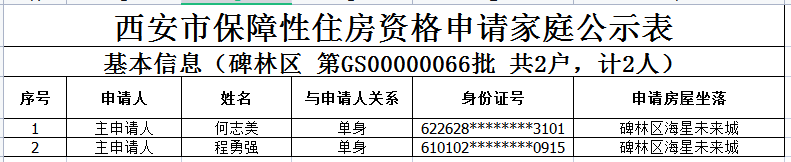 西安市保障性住房资格申请家庭公示表