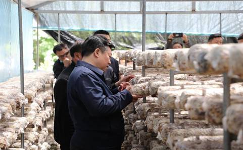 随后,在驻村工作队同志的带领下,刘其智一行先后调研考察香菇大棚基地、黑猪养殖基地和菌棒生产基地项目。通过实地考察和当地群众、有关负责人深入交流,详细了解项目建设进展及带动周边群众增收致富的情况,并对下一步脱贫攻坚工作进行现场指导。