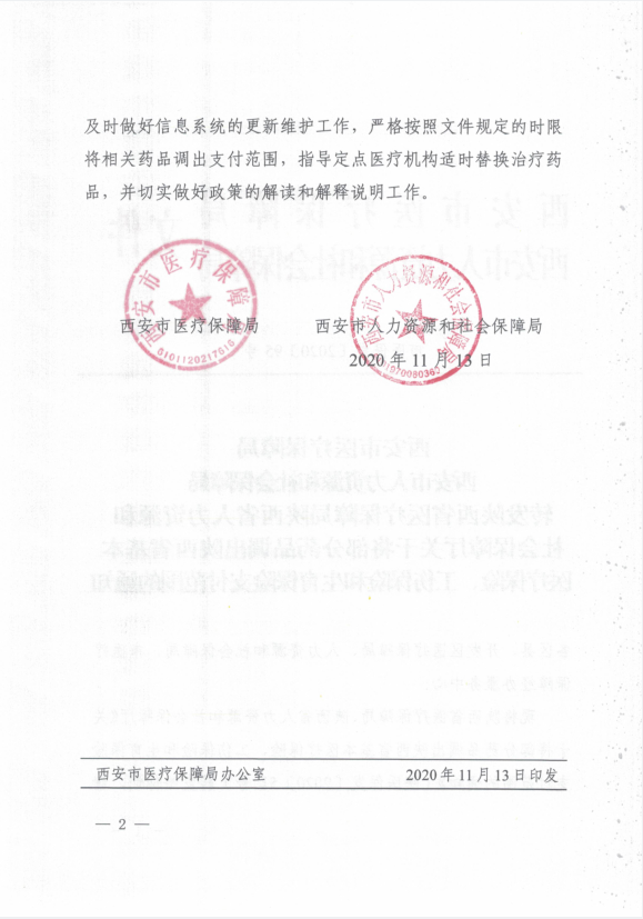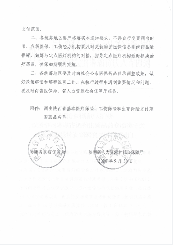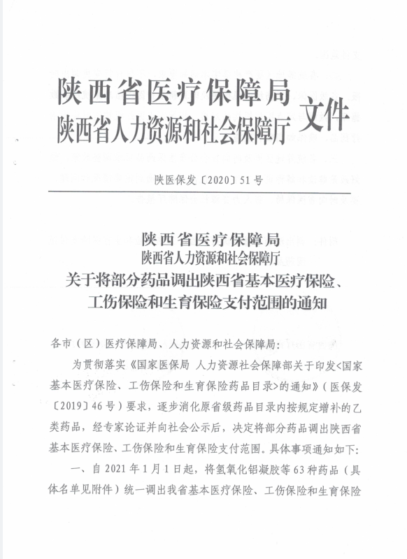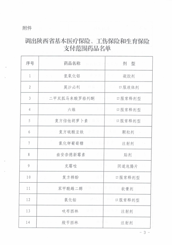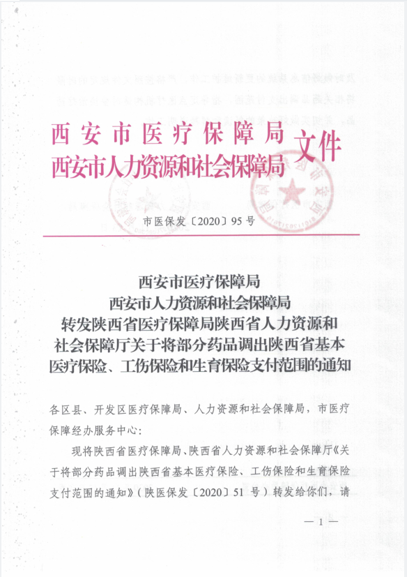 西安市医疗保障局 西安市人力资源和社会保障局 转发陕西省医疗保障局陕西省人力资源和社会保障厅关于将部分药品调出陕西省基本医疗保险、工伤保险和生育保险支付范围的通知