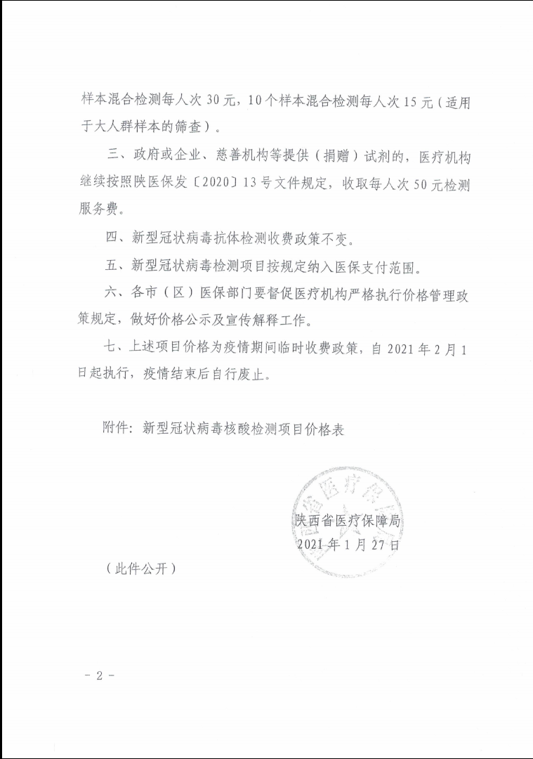 西安市医疗保障局关于转发调整公立医疗机构新型冠状病毒核酸检测收费政策有关问题的通知.pdf