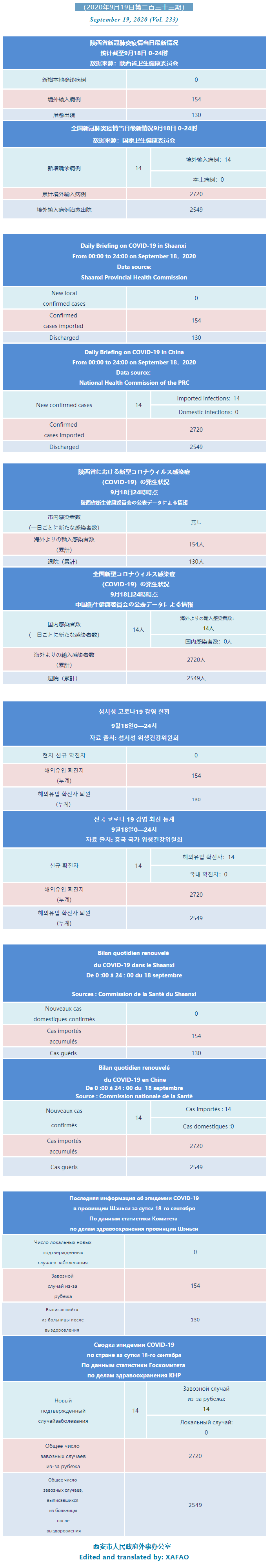 西安市外办向在西安的外国人通报每日疫情(第二百三十三期)