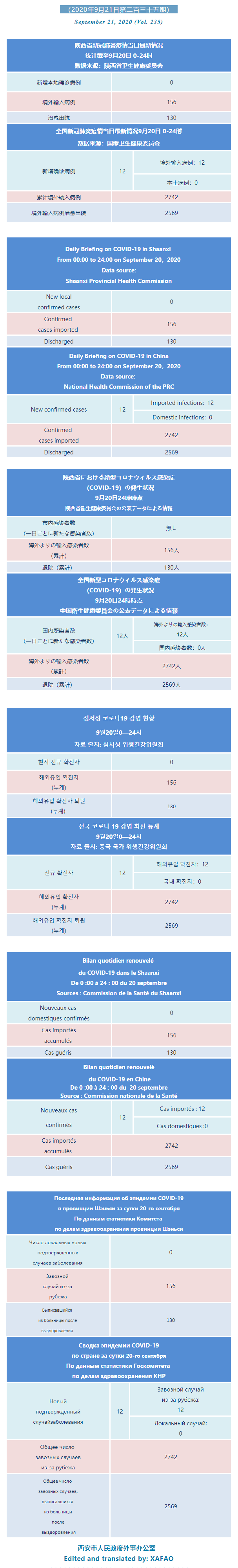 西安市外办向在西安的外国人通报每日疫情(第二百三十五期)
