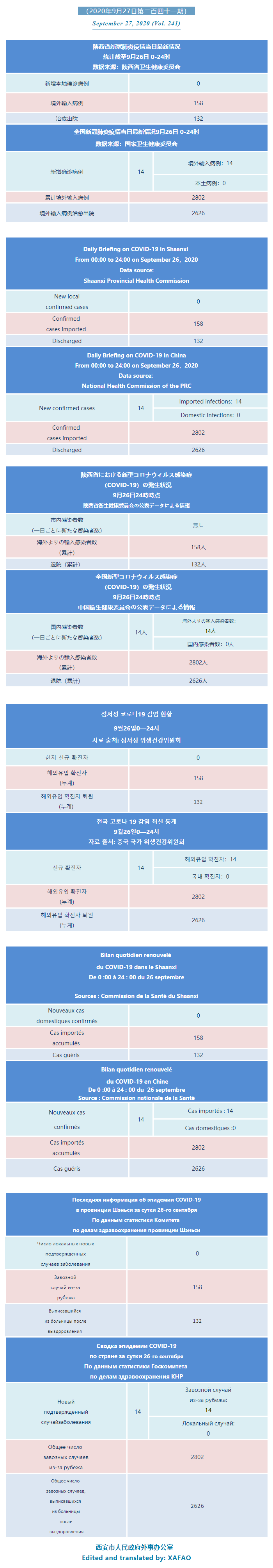 西安市外办向在西安的外国人通报每日疫情(第二百四十一期)