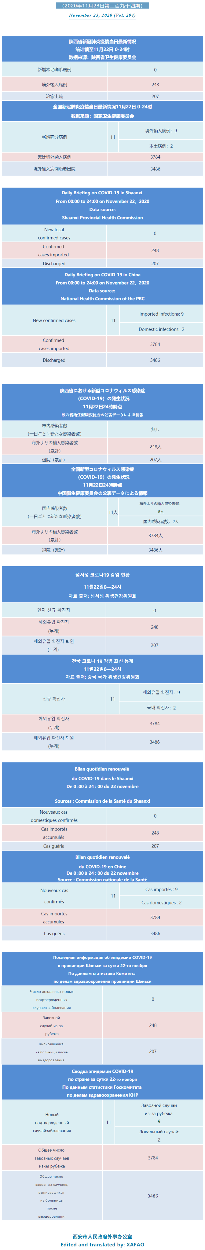 西安市外办向在西安的外国人通报每日疫情(第二百九十四期)