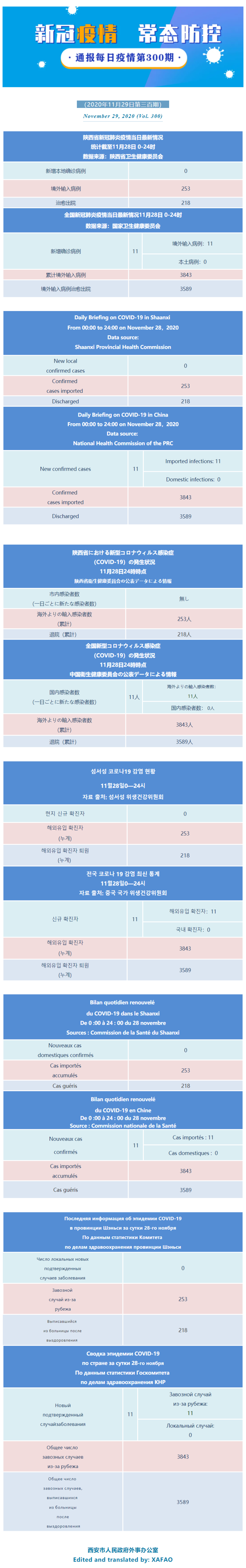 西安市外办向在西安的外国人通报每日疫情(第三百期)