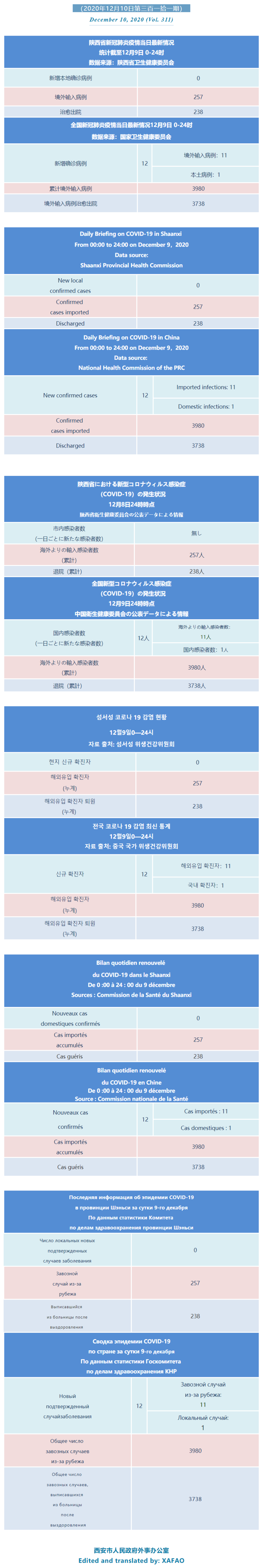 西安市外办向在西安的外国人通报每日疫情(第三百一拾一期)
