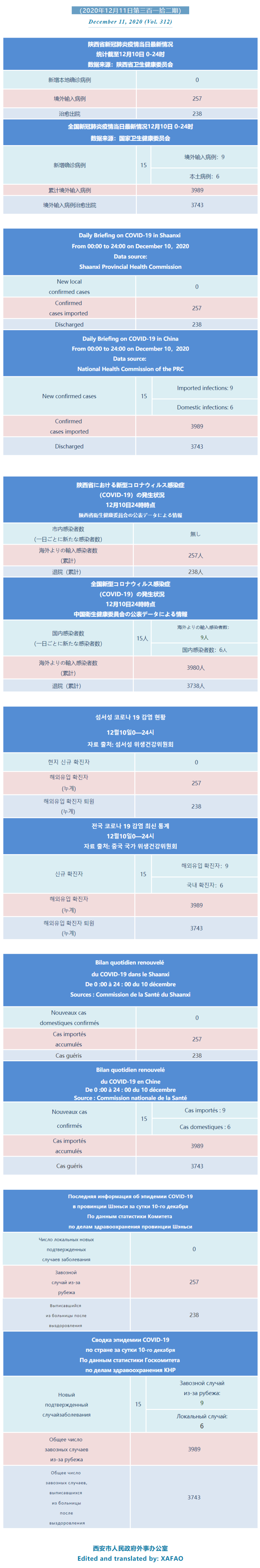 西安市外办向在西安的外国人通报每日疫情(第三百一拾二期)
