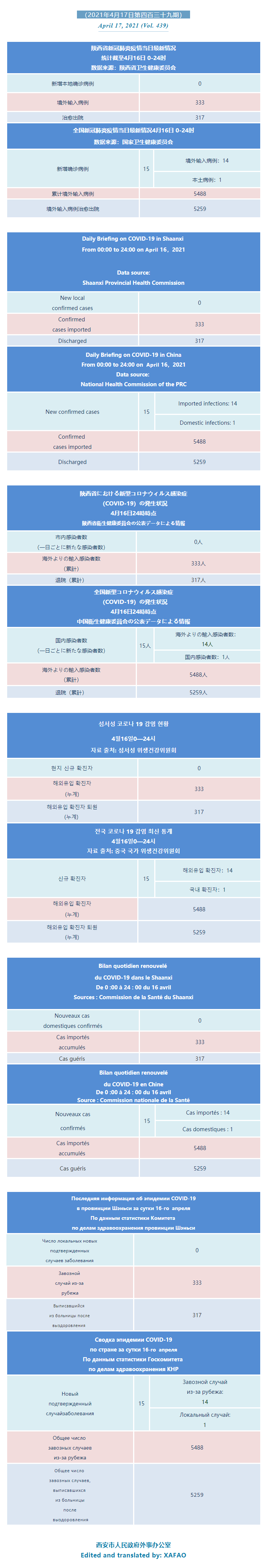 西安市外办向在西安的外国人通报每日疫情(第四百三十九期)