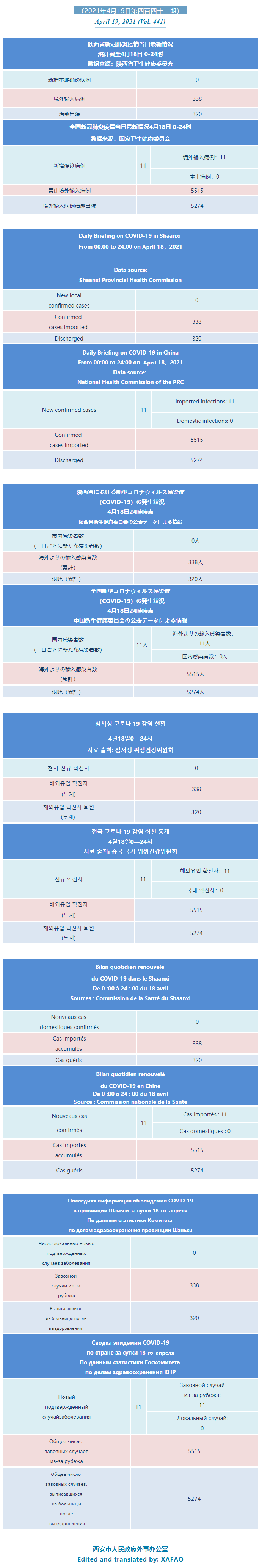 西安市外办向在西安的外国人通报每日疫情(第四百四十一期)