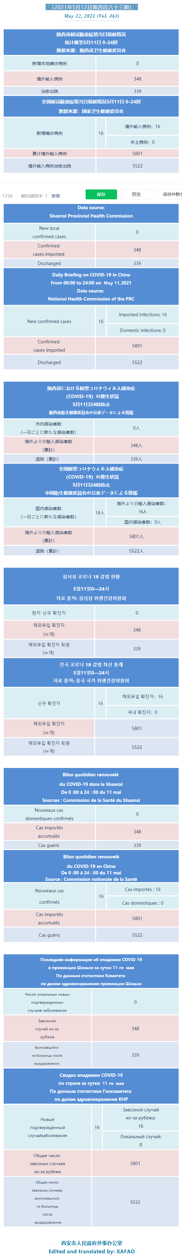 西安市外办向在西安的外国人通报每日疫情(第四百六十三期)