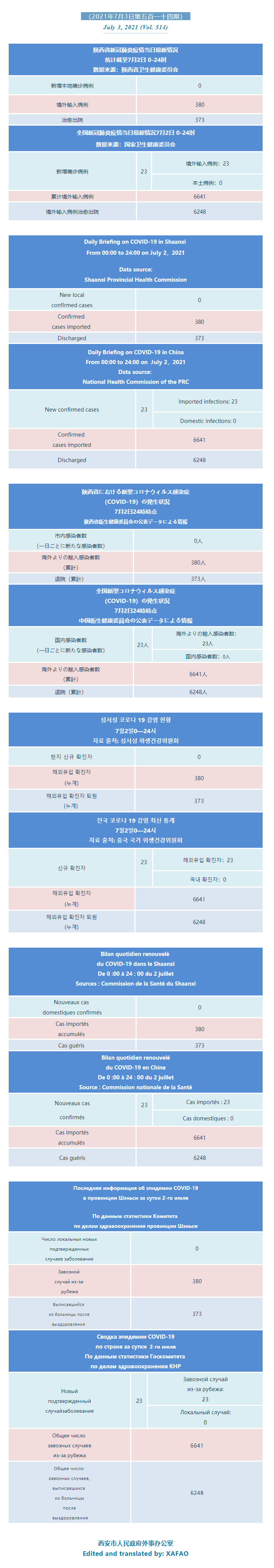 西安市外办向在西安的外国人通报每日疫情(第五百一十四期)