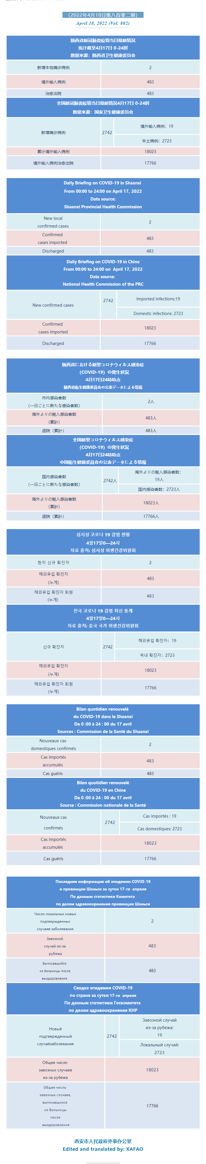 西安市外办向在西安的外国人通报每日疫情(第八百零二期)