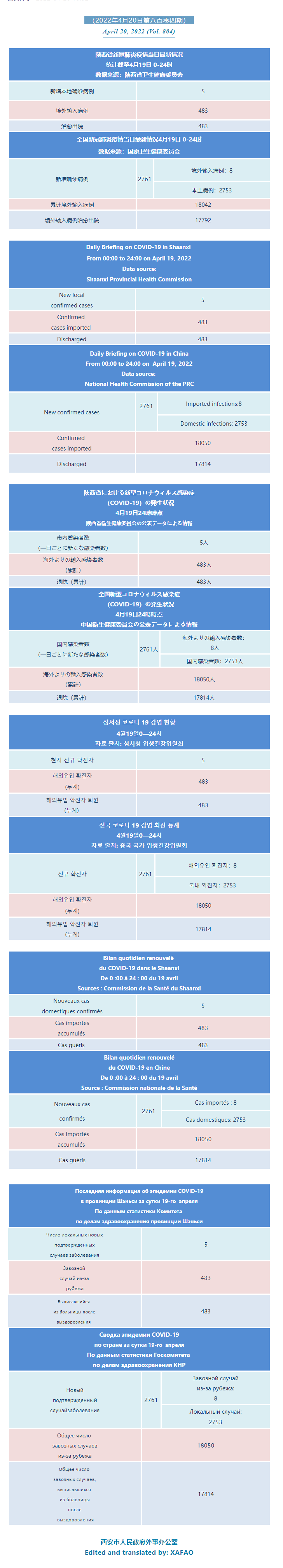 西安市外办向在西安的外国人通报每日疫情(第八百零四期)