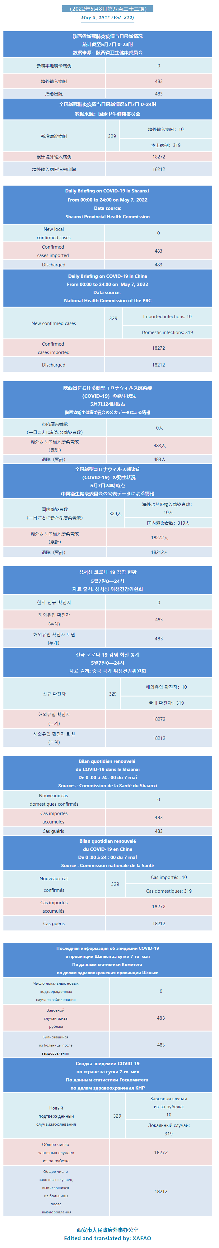 西安市外办向在西安的外国人通报每日疫情(第八百二十二期)