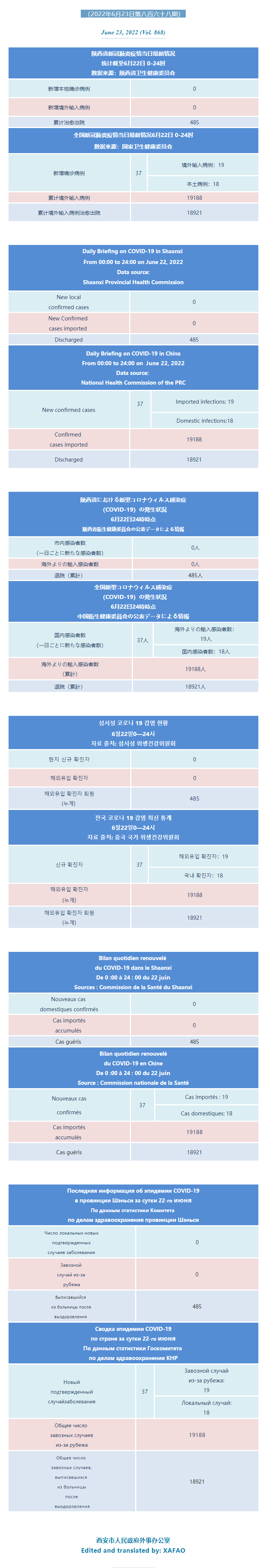 西安市外办向在西安的外国人通报每日疫情(第八百六十八期)