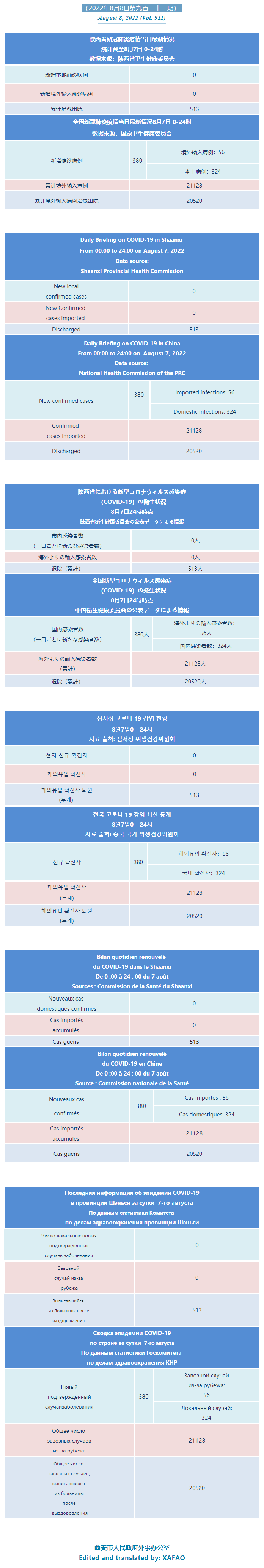 西安市外办向在西安的外国人通报每日疫情(第九百一十一期)