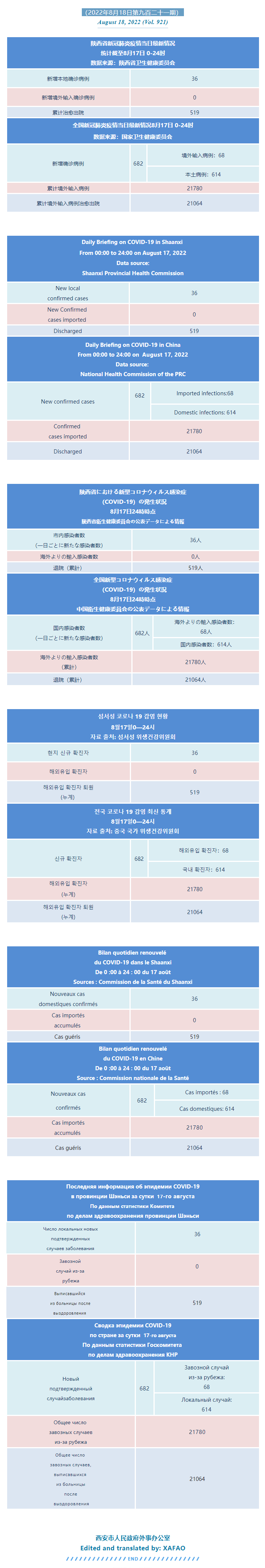 西安市外办向在西安的外国人通报每日疫情(第九百二十一期)
