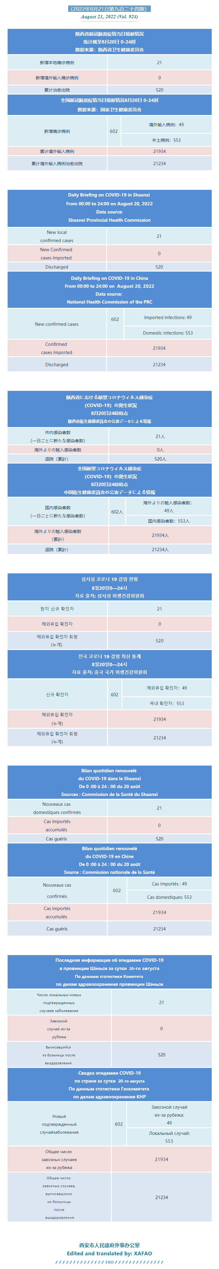 西安市外办向在西安的外国人通报每日疫情(第九百二十四期)